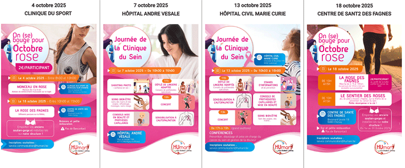 HUmani CHU Charleroi-Chimay organise 4 journées dédiées à la prévention du cancer du sein : stands d’informations, ateliers bien-être, marches au profit de la lutte contre le cancer…